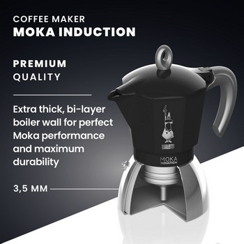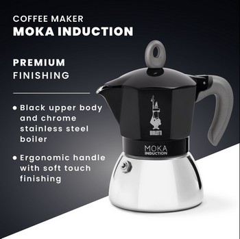 New Moka Indukcia je nová modelovou sériou moka kanvičiek z dielní celosvetovo preslávenej talianskej firmy Bialetti. Disponuje kompatibilitou s indukčným ohrevom, vďaka dvojvrstvovému prevedeniu zásobníka sa však súčasne pýši aj excelentnou schopnosťou zberu patiny tak ako moka kanvičky z hliníka. Zatiaľ čo vonkajšia časť kanvičky je totiž vyrobená z nerezovej ocele AISI 430, jej vnútornú časť pokrýva práve hliníková vrstva, ktorá umožňuje zbierať patinu s maximálnou efektivitou. Výhodu predstavuje tiež prítomnosť patentovaného ventilu Bialetti pre bezpečnosť ohrevu a ľahké čistenie, pričom za zmienku stojí aj rukoväť z tepelne odolného polyamidu 66. Dostupné v čiernej a červenej farbe.