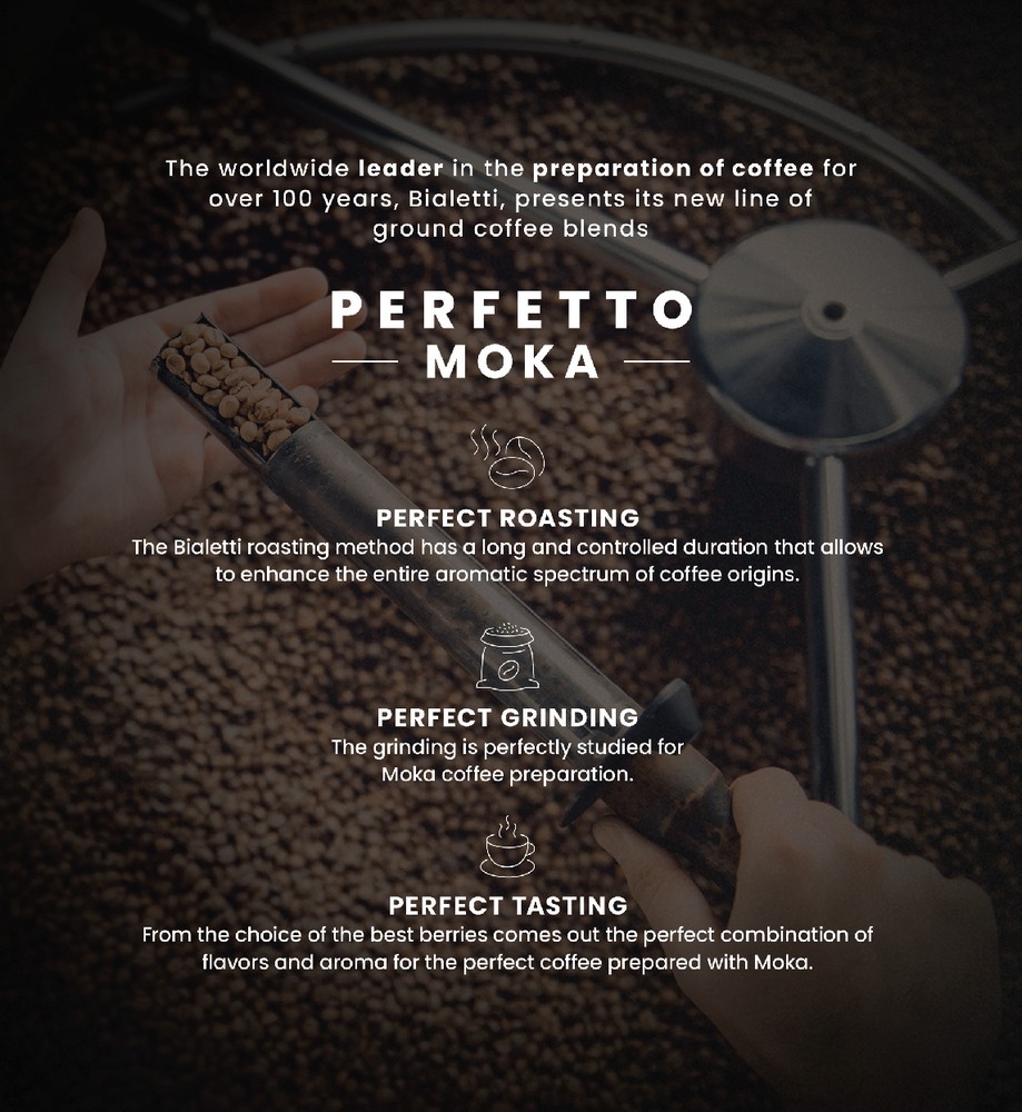 Perfetto Moka Čokoláda je káva s čokoládovou arómou v doplnení jemných karamelových tónov. Prímes 20% Robusty skvele dopĺňa chuť kakaa. Káva je špeciálne navrhnutá na použitie v moka kanvičkách, vhodná je však aj na prípravu v kávovaroch s papierovým filtrom či v pákových kávovaroch. Ide o zmes v pomere 80% Arabica - 20% Robusta.