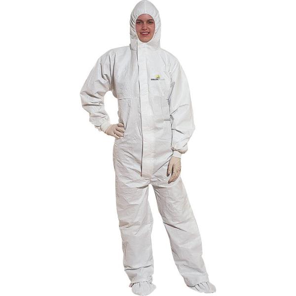 Jednorázová kombinéza s elastickou kapucňou. Netkaný materiál Deltatek® 5000.