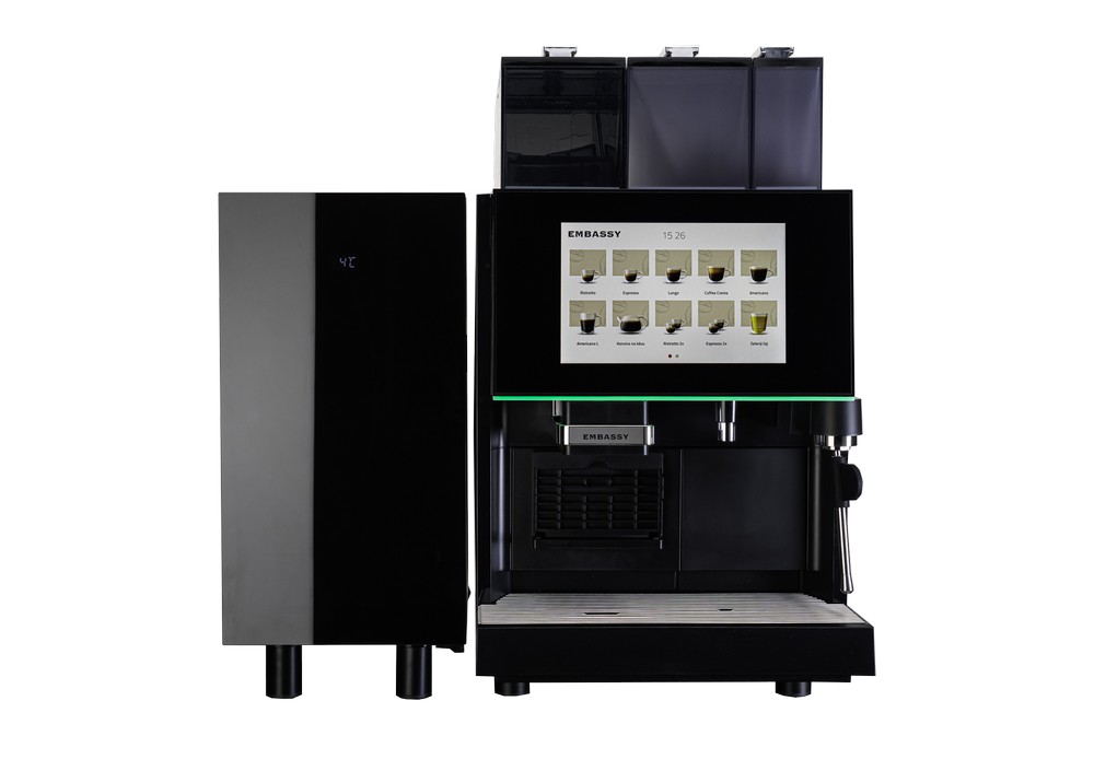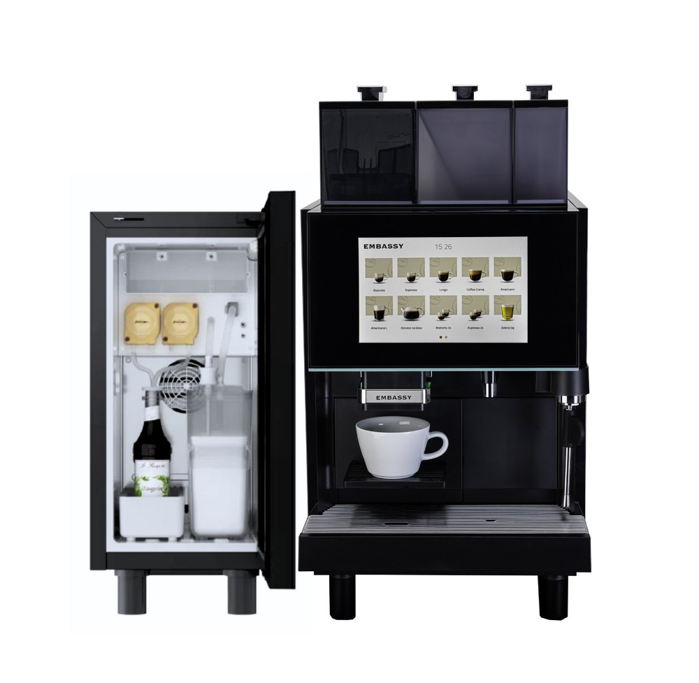 Ovládanie uľahčuje 10" dotykový displej s niekoľkými režimami, USB portom pre nahranie obrázkov alebo videí a LED podsvietením v RGB spektre. Kávovar podporuje českú lokalizáciu, platobné systémy MDB a má uzamykateľné zásobníky. Súčasťou setu je chladnička M2 pre prípravu kávy z dvoch rôznych typov ml.