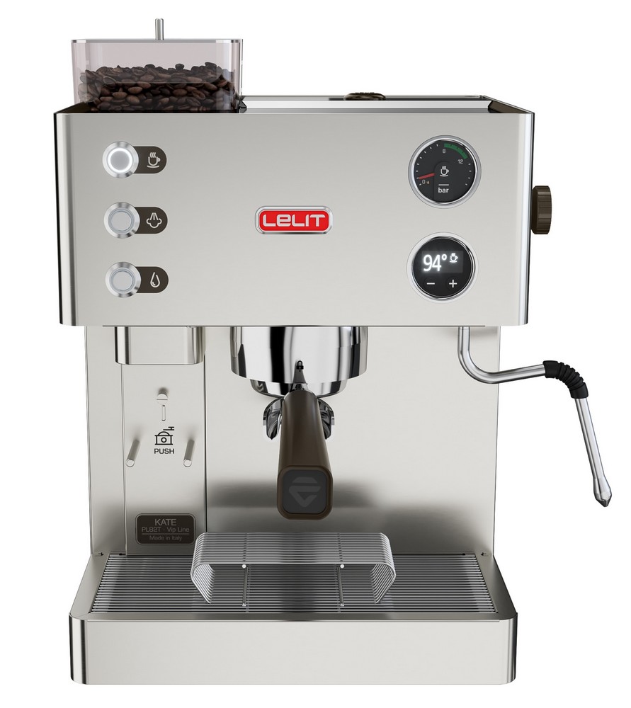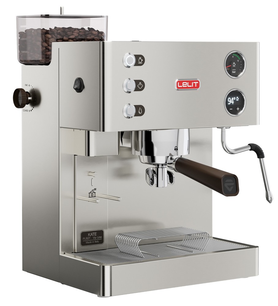 Lelit Kate je poloprofesionální pákový kávovar vybavený manometrem, OLED displejem, třícestným solenoidním ventilem, mosazným bojlerem 300 ml a integrovaným bezkrokovým mlýnkem. Mlecí kameny mlýnku mají průměr 38 mm a jsou zhotoveny z nerezové oceli. Teplotu a tlak bojleru lze měnit díky technologii LLC (Lelit Control Center). Schránka kávovaru je kompletně zhotovena z nerezové oceli. Horní část schránky slouží také jako ohřevná plocha pro šálky.