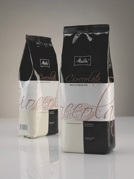 Instantná zmes na prípravu horúcej bielej čokolády. Zmes obsahuje 27% sušeného mlieka a 8% kakaa.