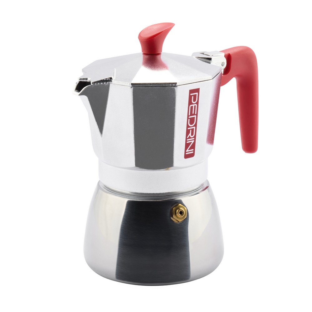 Pedrini Aroma Induction je moderná indukčná moka kanvička, ktorá spája tradičnú taliansku kvalitu s inovatívnymi technológiami. Je vyrobená z potravinárskeho hliníka a nerezovej ocele INOX 18/10, pričom vnútorná hliníková vrstva zaisťuje zber patiny, ktorá prispieva k bohatej chuti kávy. Vonkajšia nerezová vrstva je určená na indukčnú kompatibilitu, čo zaisťuje univerzálnosť na rôznych typoch sporákov. Kanvička je vybavená žiaruvzdornou rukoväťou a silikónovým tesnením, ktoré garantujú dlhú životnosť a bezpečné používanie. O bezpečnosť pri príprave kávy sa tiež stará spoľahlivý bezpečnostný ventil, ktorý chráni pred pretlakom.