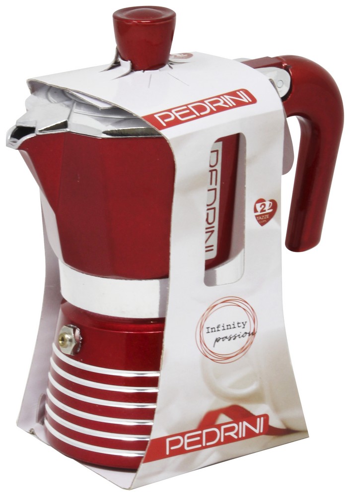 Infinity od talianskej značky Pedrini je štýlová moka kanvička vyrobená z prémiového potravinárskeho hliníka. Jej povrch zdobí trblietavá žiaruvzdorná glazúra, ktorá chráni materiál pred opálením a stratou kvality aj pri dlhodobom používaní. Elegantné kruhové obrazce na veku a spodnej časti dodávajú kanvičke šmrnc, ktorý oslní nielen vás, ale aj každú vašu návštevu.