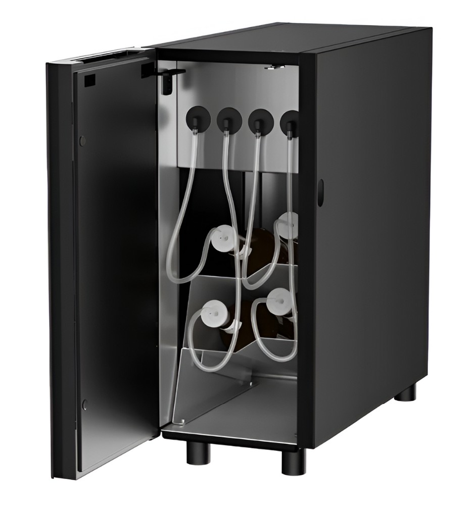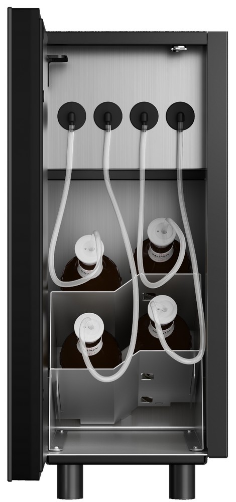 Stojan je uzamykateľný, vďaka čomu je ideálny pre samoobslužné prevádzky a umožňuje bezpečné skladovanie sirupov v optimálnych podmienkach. Je plne kompatibilný s kávovarmi Embassy Bogota I, Bogota II a Embassy Cartago a ponúka možnosť použitia 4 fliaš sirupu pre väčšiu variabilitu chutí.